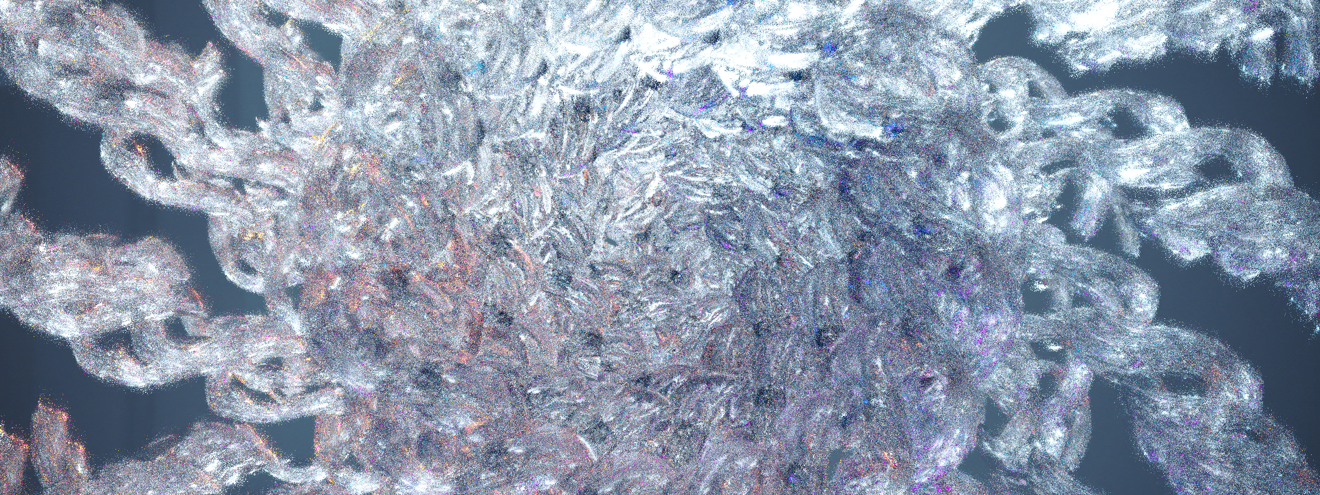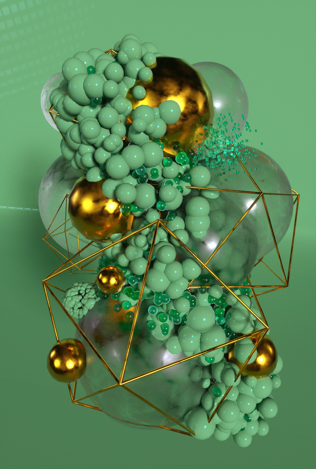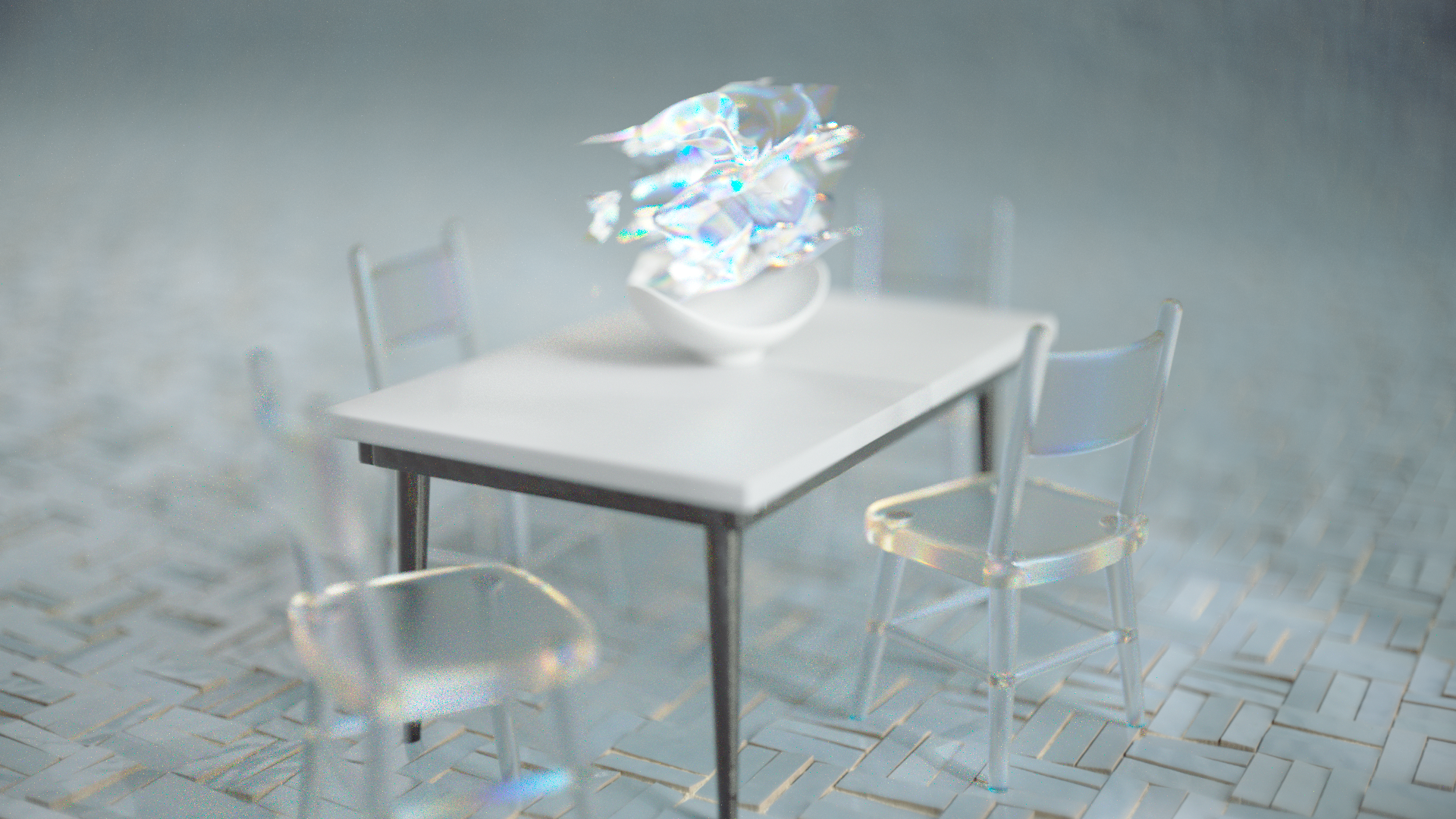 禅問答 樹木の葉にフラクタル立体を用いることで禅問答を表現し、地に根が張るという言葉のアンチテーゼとして逆さまの木が成っています