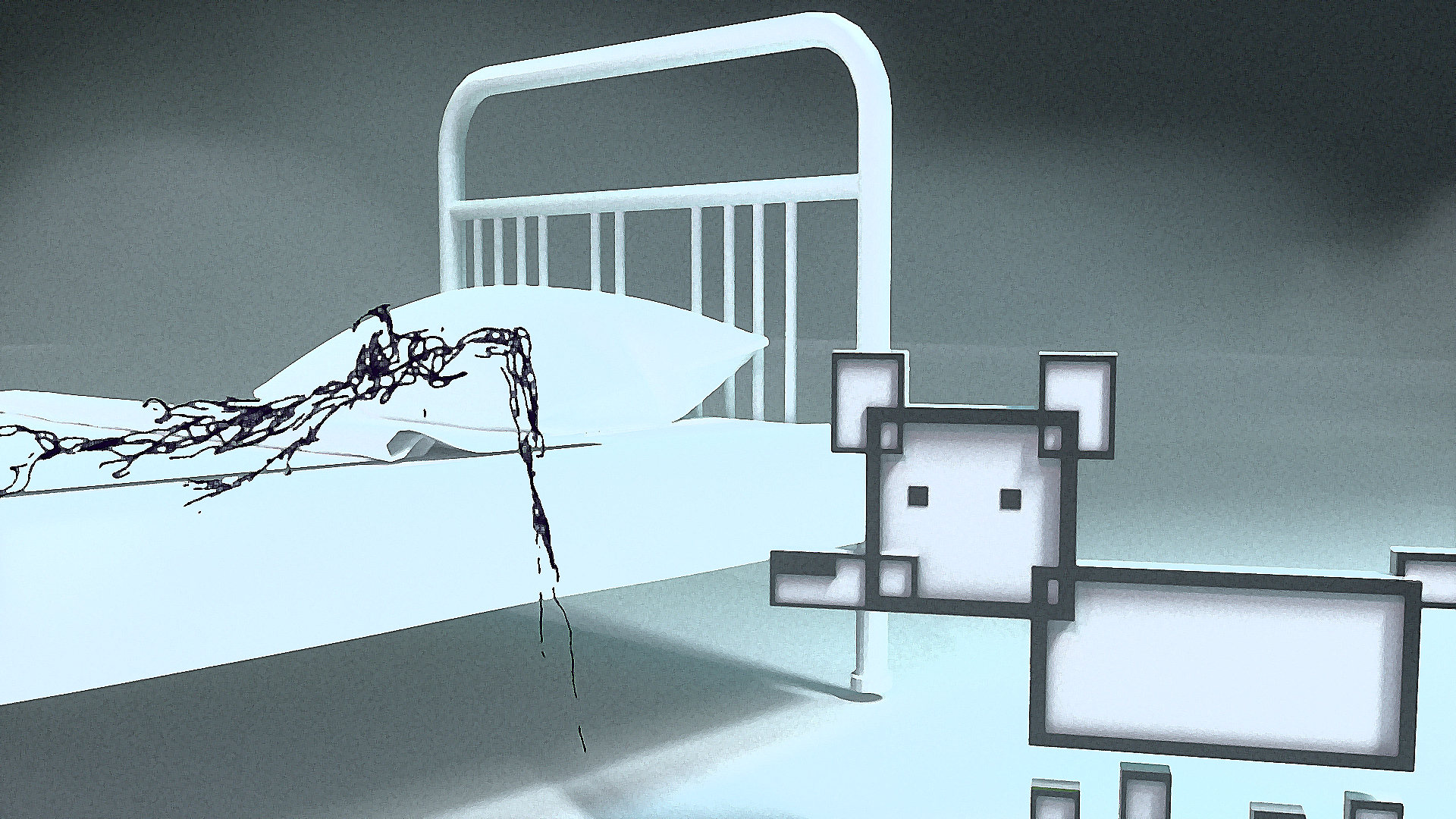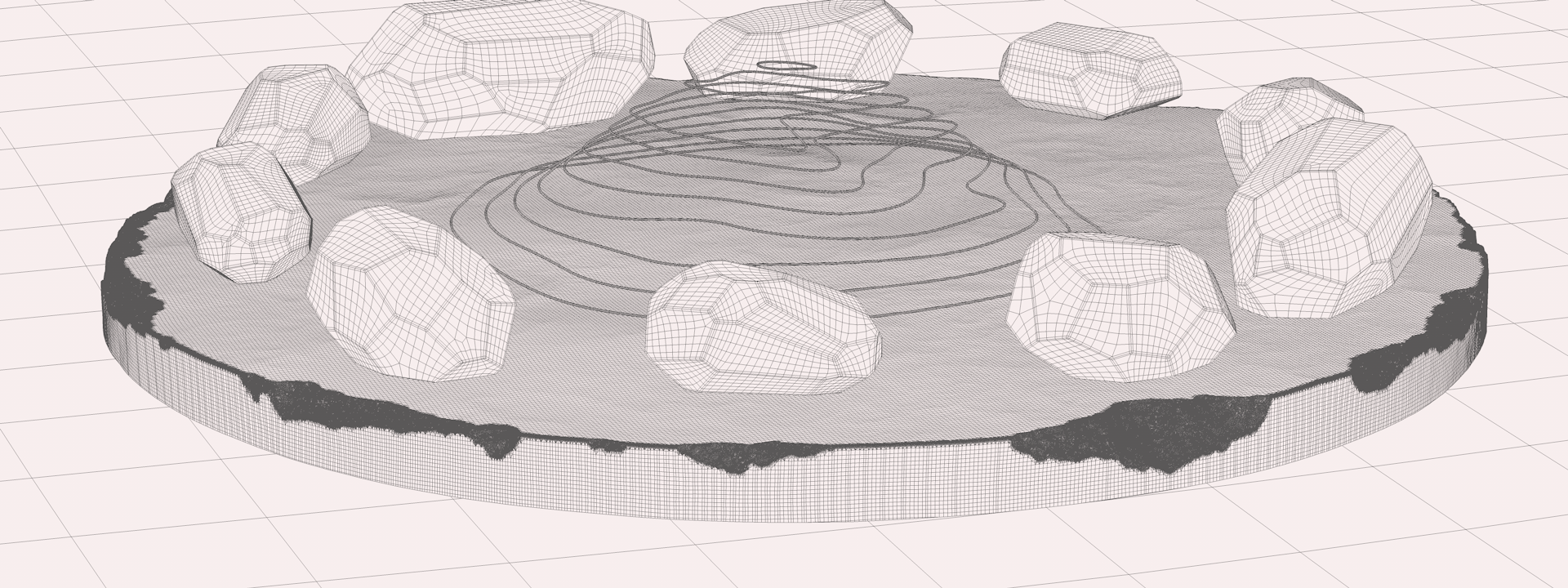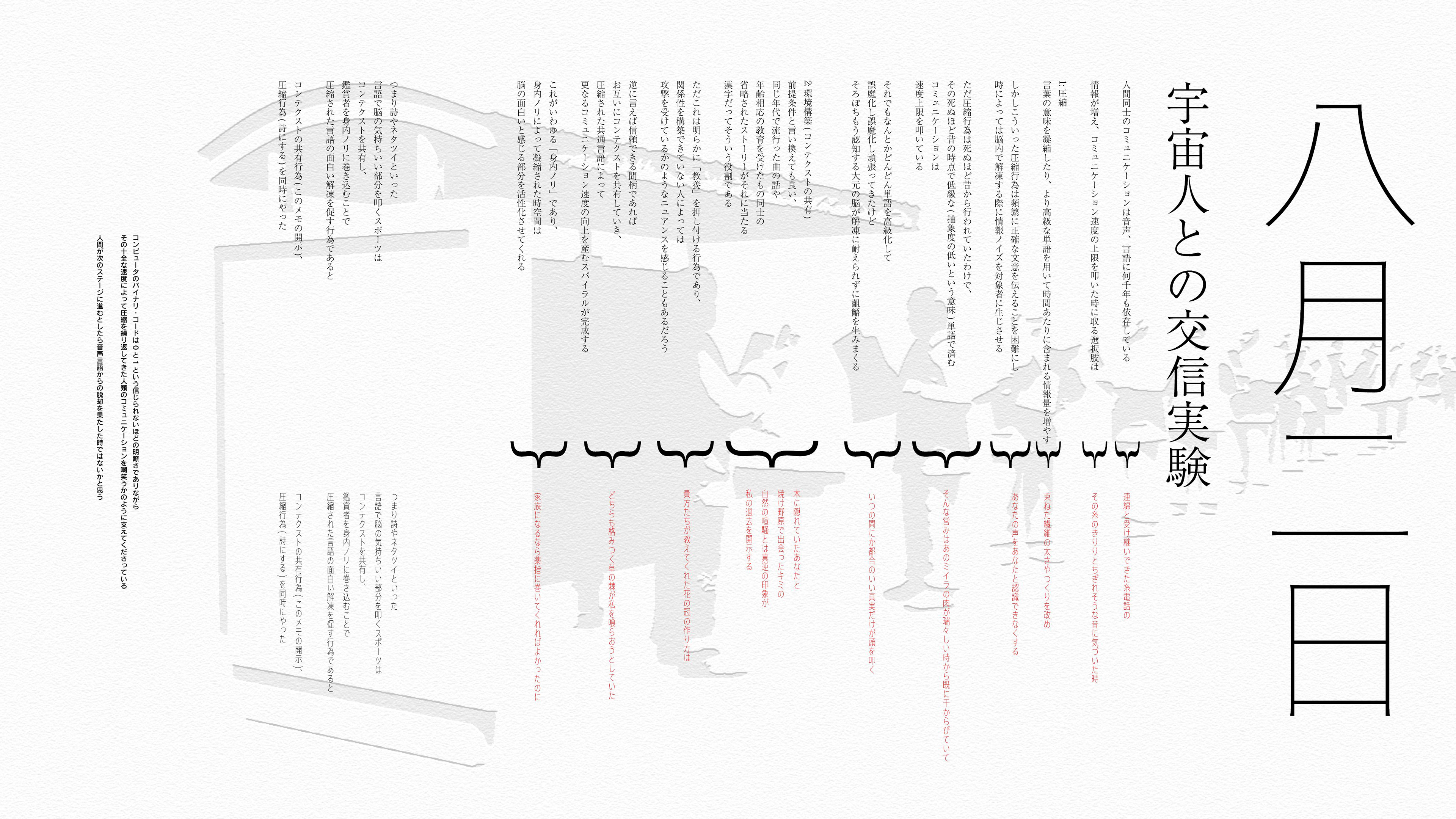 禅問答 樹木の葉にフラクタル立体を用いることで禅問答を表現し、地に根が張るという言葉のアンチテーゼとして逆さまの木が成っています